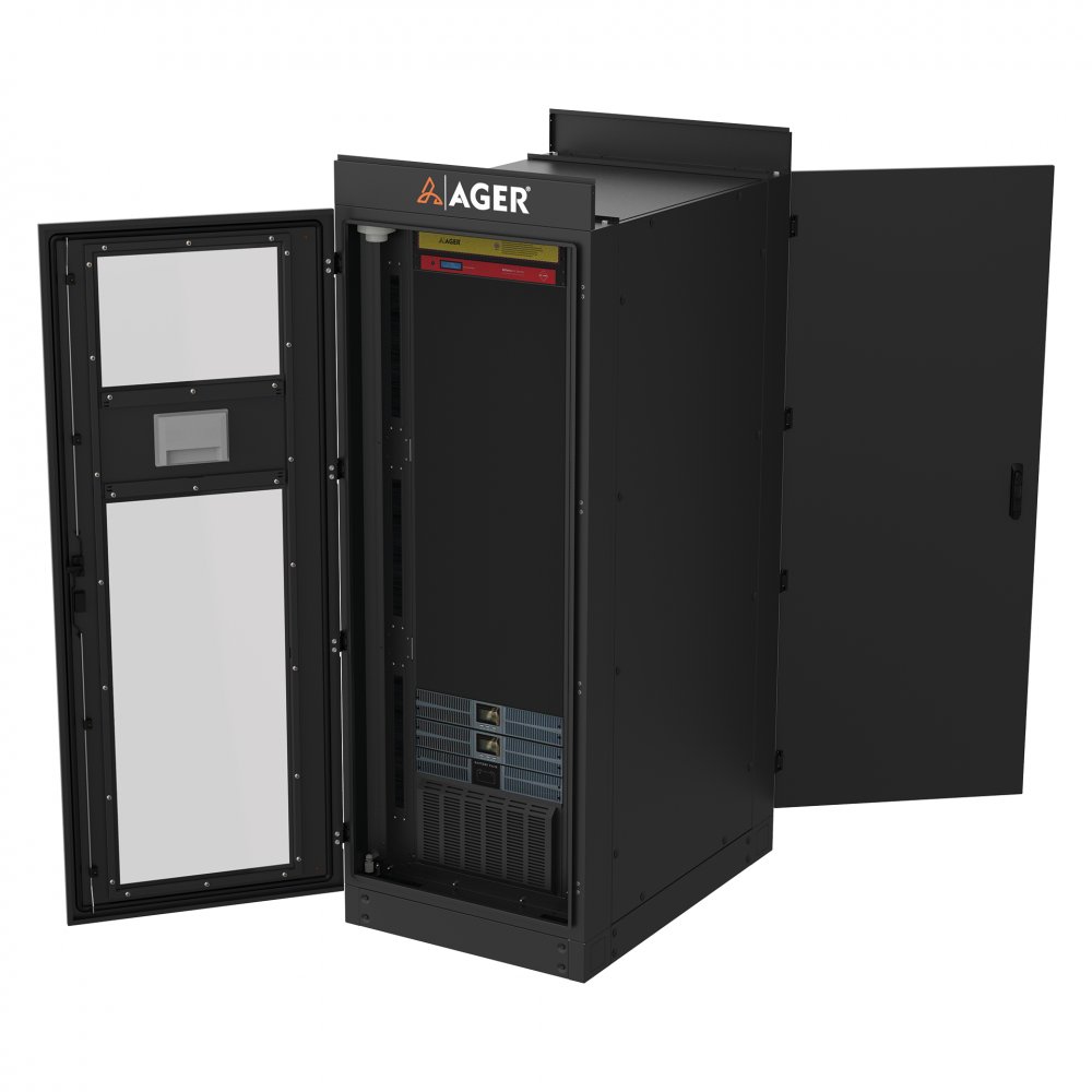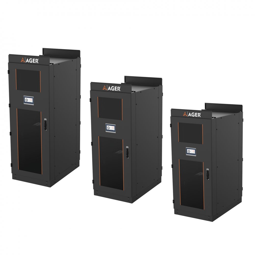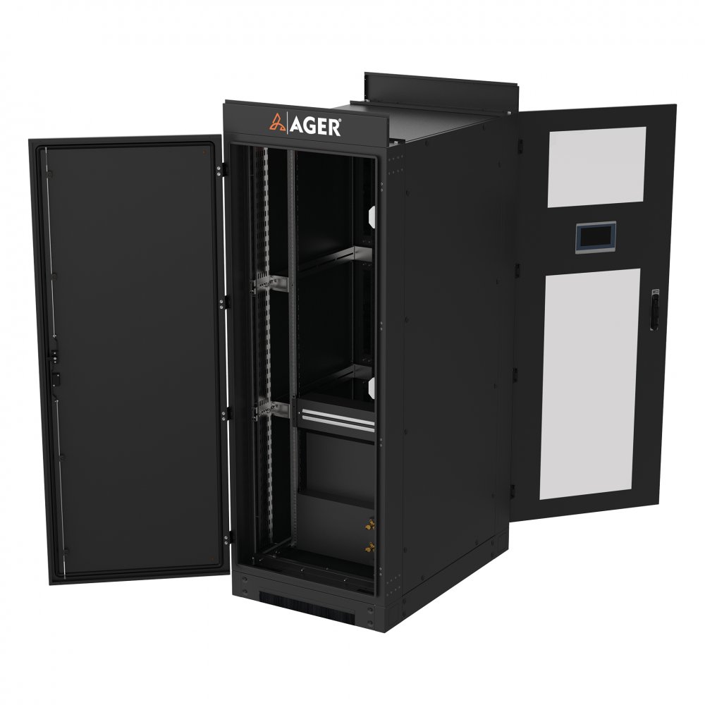 AGER IN COOL MICRO DC Series cabinets are engineered to deliver high efficiency, operational continuity, and precise environmental control for critical IT applications.Thanks to the evaporator unit integrated directly inside the cabinet, the heat generated by IT equipment is accurately controlled and effectively removed from the enclosed space.By positioning the compressor and condenser in the outdoor environment, thermal load, noise, and vibration are isolated from the cabinet interior, ensuring a stable and equipment-friendly operating environment. This architecture enhances overall energy efficiency while providing ideal operating conditions for sensitive IT equipment.