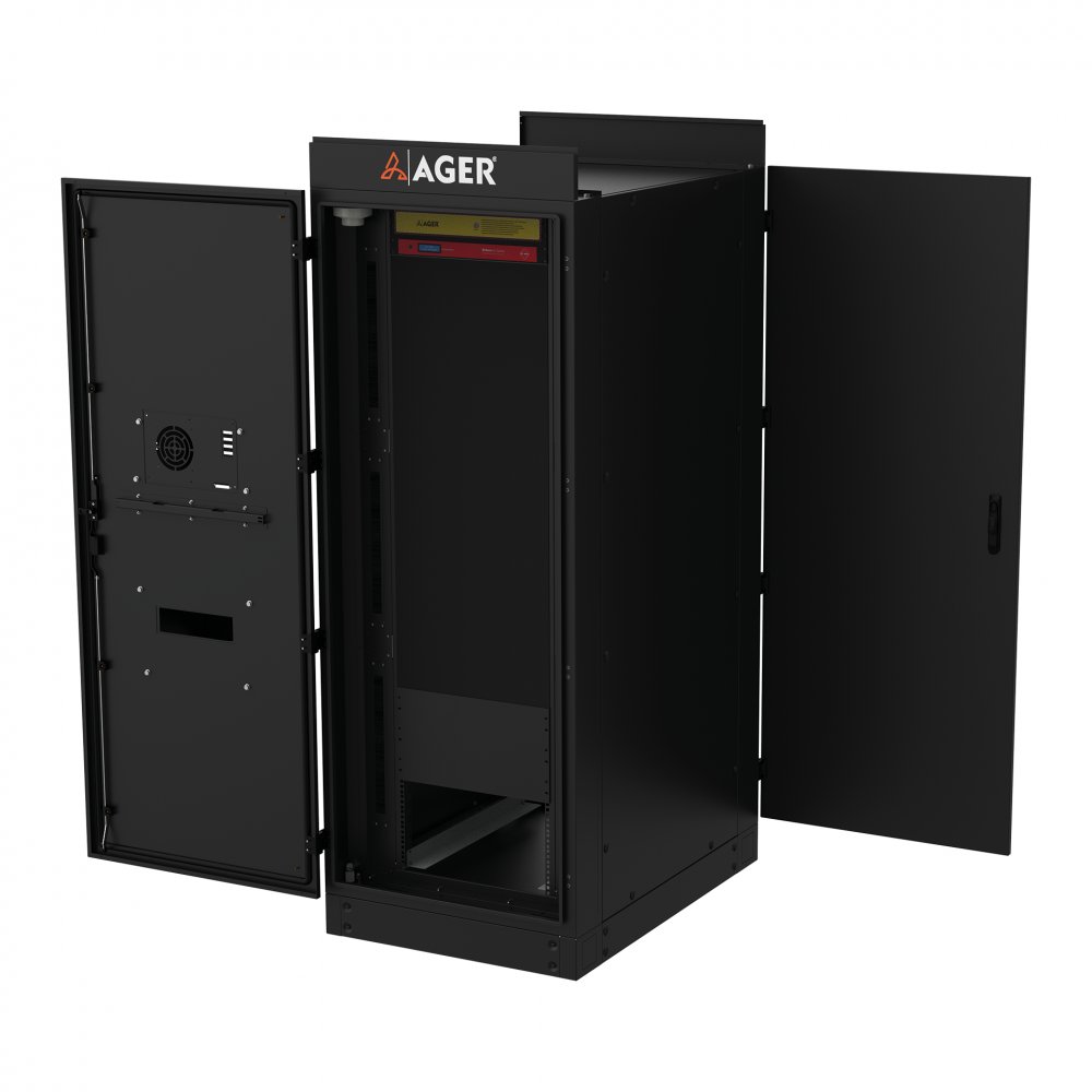 AGER DOOR COOL MICRO DC Serisi kabinetler aktif soğutma,havalandırma imkanı bulunmayan ortamları veri merkezine dönüştürmek için geliştirilmiştir. Standart olarak ön kapak üzerine entegre edilen kompakt soğutma ünitesi ile kabinet içi hava akışı doğrudan ve yüksek verimli bir şekilde kontrol edilir.IT ekipmanlarının yerleşimi ve bu yerleşime bağlı oluşan ısı-sıcaklık haritasına göre arka kapak veya yan panel üzerine de entegre edilebilen kompakt soğutma ünitesi sayesinde yüksek verimli ve yer tasarrufu sağlayan bir soğutma yaklaşımı sunar.